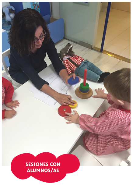 - Sesiones individuales con los alumnos y alumnas que lo necesiten. Se trabaja individualmente con cada niño y niña, realizando una intervención específica dependiendo de sus necesidades y cararcterísticas personales, trabajando tanto la estimulación temprana como las dificultades de aprendizaje.